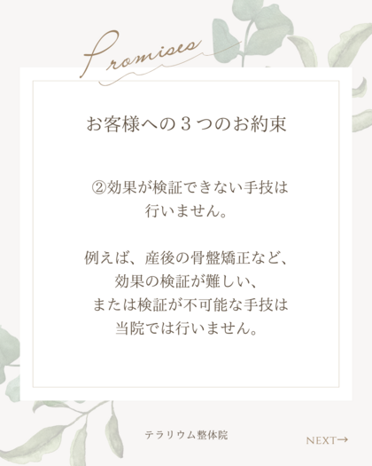 ②効果が検証できない手技は行いません。