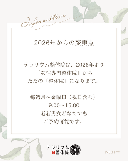 テラリウム整体院11月のご予約開始しました!※祝日も営業いたします※