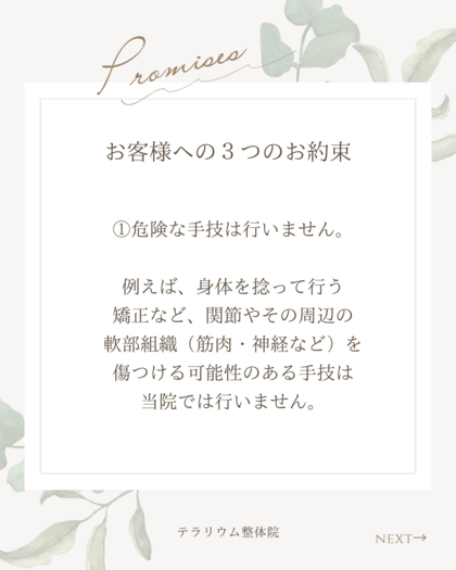 ①危険な手技は行いません。